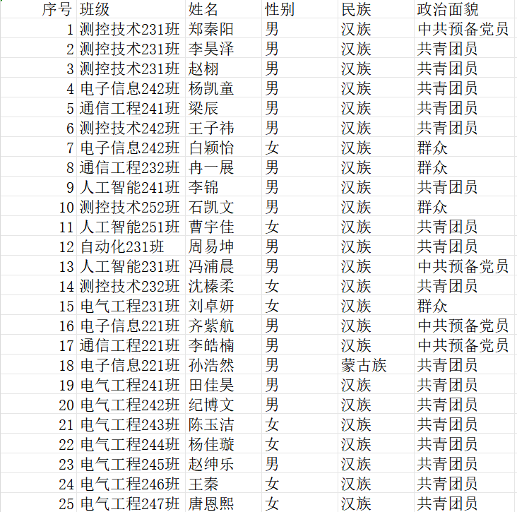代表名单(表格)