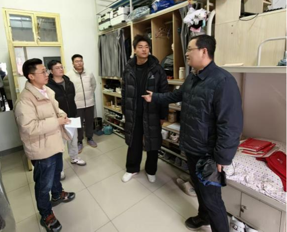 走访中,陈长征、杨亚萍一行逐一走进宿舍,与同学们亲切交谈、细致交流,详细询问大家假期生活、返校行程及身心适应情况。重点围绕新学期课程安排、学业规划、学科竞赛、择业就业与未来发展目标等话题,耐心倾听同学们的想法与诉求,现场解答学习生活中的困惑。