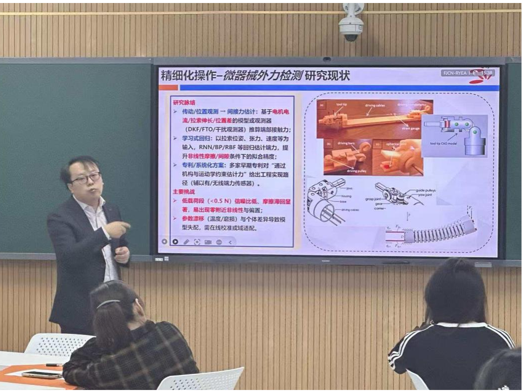 论坛伊始,马天力副教授以《逆变器开路故障诊断技术研究》为题,围绕逆变器故障诊断这一工业领域关键问题展开分享,他的研究为无人系统电力驱动模块的可靠性提升提供了技术支撑。随后,王文杰副教授带来《腹腔手术机器人精细化与自主化操作》的精彩报告。报告中,他深入解析了腹腔手术机器人在精细化操作与自主化控制方面的技术突破,为无人系统在医疗领域的创新应用打开了思路。最后,我院宋科高级工程师聚焦《自动化及机器人应用项目实践及探讨》,从工程应用角度阐述了自动化及机器人技术在实际项目中的落地路径。他的分享将理论与实践深度融合,为学院产学研一体化发展及服务国家战略新兴产业需求提供了有益参考。