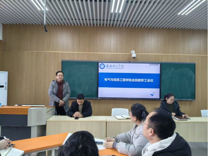 2026年1月23日,电气与信息工程学院召开全院教职工大会,学院领导班子及全体教职工参加。院长杨亚萍主持会议。