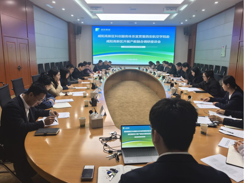 调研组首先参观咸阳高新区数字会客厅,直观了解园区产业布局、科技创新成果及发展规划。座谈会上,琚晓涛详细介绍咸阳高新区产业定位、发展格局及科技创新扶持政策;科技专员围绕企业培育、项目申报、科技金融、知识产权转化等专项服务政策进行深度解读。企业代表结合自身发展实际,介绍产品类型及技术研发需求。柯善文从师资队伍、专业设置、科研团队及平台建设等方面,全面展示学院学科优势与科研实力。杨亚萍聚焦人才共享、联合项目攻关、奖项申报三大方向,提出“校招企用”“产学研协同”等具体合作模式建议。陈长征则从定向人才输送、实习实践基地共建、党建联建促发展三个维度,提出深化政校企合作的构想。冯伟在总结发言中表示,此次调研座谈会,搭建起务实高效的对接平台,希望校企双方加快推动合作事项落地,切实贯通人才链、创新链、产业链,携手打造区域协同发展新样板。