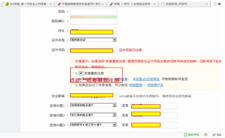 一、登录学信网,进入注册页面进行注册,按照下图提示勾选“我要重新注册”。